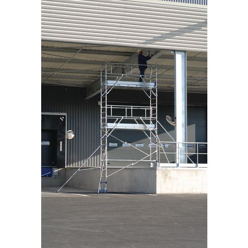 Pojízdné hliníkové lešení Totem 2 Line Tubesca-Comabi, délka podlahy 2,43 m, pracovní výška 3,85 m