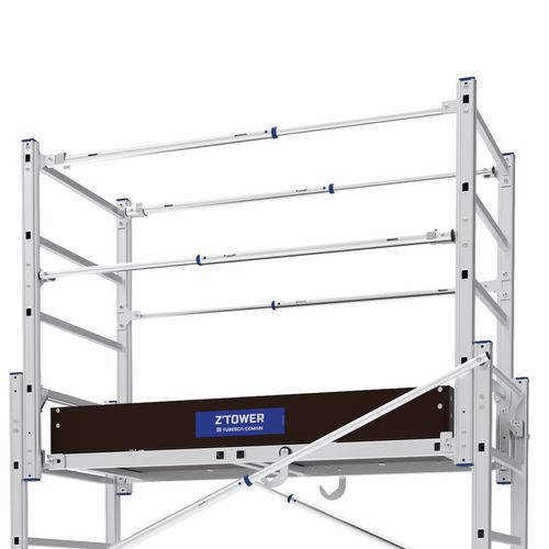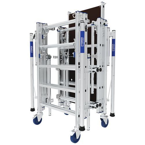 - Teleskopické lešení Z-Tower je hliníkové lešení, které může pracovat až do výšky 3,80 m a kombinuje mobilitu, snadné použití a skladování.