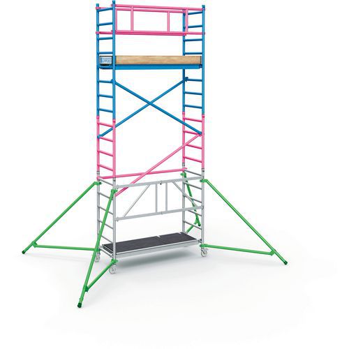 Mobilní lešení v šesti různých velikostech k bezpečnému provádění prací při montážích, opravách a údržbě ve výškách.