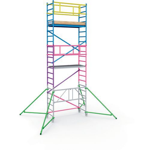 Mobilní lešení v šesti různých velikostech k bezpečnému provádění prací při montážích, opravách a údržbě ve výškách.