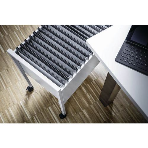 - Robustní kovové vozíky na závěsné složky formátu A4.
