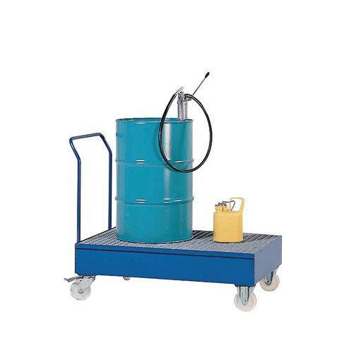 k bezpečné vnitropodnikové přepravě nebezpečných látek splňují požadavky zákona o vodním hospodářství přípustné pro skladování hořlavých kapalin záchytný objem 60 a 200 l kapacita 1 sud 60l - 2 sudy 200l, u variant na dva sudy lze skladovat i ležící sudy (např. v kombinaci se sudouvou podpěrou) snadno ovladatelné pomocí madla vyjímatelný žárově pozinkovaný mřížový rošt 2 pevná a 2 otočná kola všechny vany mají TUV certifikát Bezpečnostní pokyny: Nábytek postavte na rovný a plochý povrch. Připevněte jej ke zdi nebo k příčce pomocí vhodného upevnění. Dbejte na správné rozmístění zátěže a nepřekračujte maximální povolené zatížení. Max. statické zatížení (kg) : 850