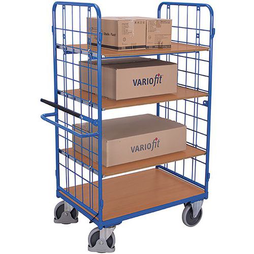 Policové vozíky s mřížovými bočnicemi a ruční brzdou, 4 police