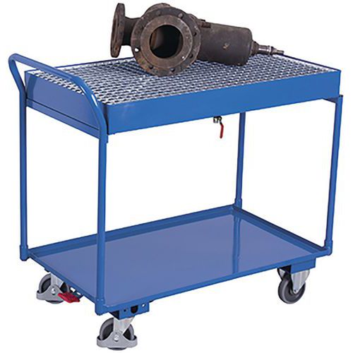 - Vozík se záchytnou vanou pro bezpečnou přepravu kapalin.