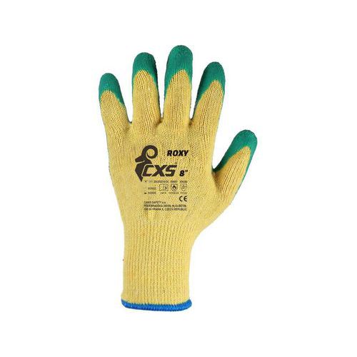 Polyesterové rukavice CXS polomáčené v latexu, zelené/žluté
