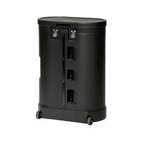 - Odolný hardcase s kolečky slouží zároveň jako praktický pult.