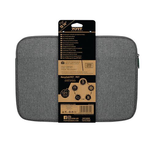 Velmi lehké, kompaktní a ekologické pouzdra na notebook. Velká přední kapsa na zip pro rychlý přístup, ideální pro nabíječku, smartphone atd. Plně polstrovaný potah pro optimální ochranu. Záruka výrobce pro zákazníka : 3 roky