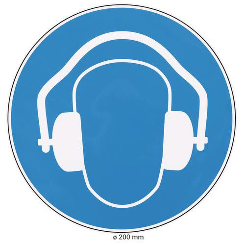 Používej chrániče sluchu - samolepka - Manutan Expert, průměr 200 mm