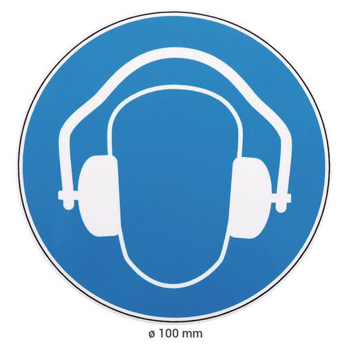Používej chrániče sluchu - samolepka - Manutan Expert, průměr 100 mm