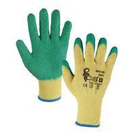 - Zelená latexová vrstva pokrývá dlaň a přední stranu prstů.