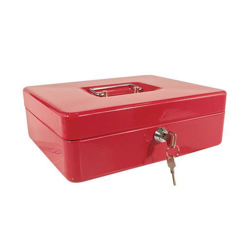 - Příruční pokladny v různých barevných variantách s horním úchytem. Obsahují vyjímatelný dělič se 4 přihrádkami.