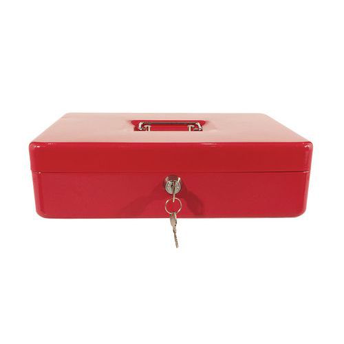 - Uzamykatelné přenosné pokladničky v několika barevných provedeních s kovovou rukojetí. Obsahují vyjímatelný dělič se devíti přihrádkami.