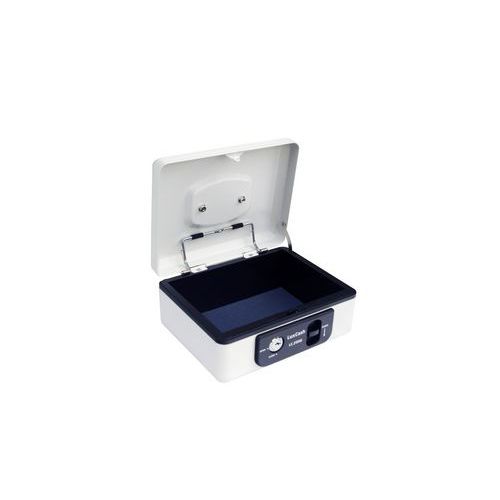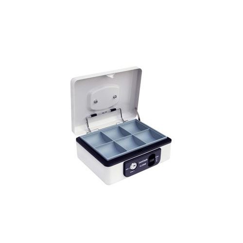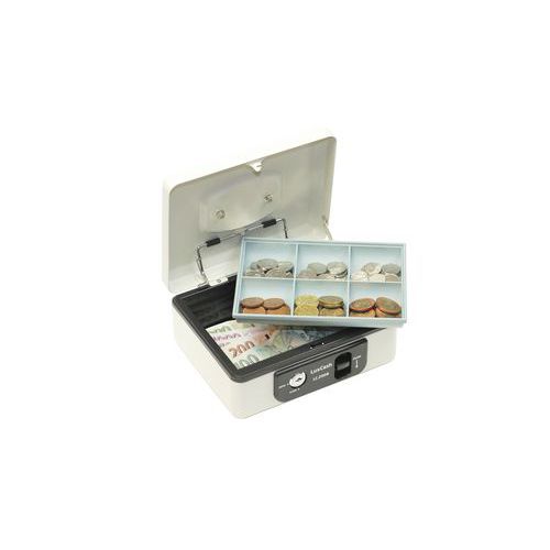 - Ocelová pokladnička s páčkou pro pohodlné otevření víka a blokací proti jeho samovolnému zavření.