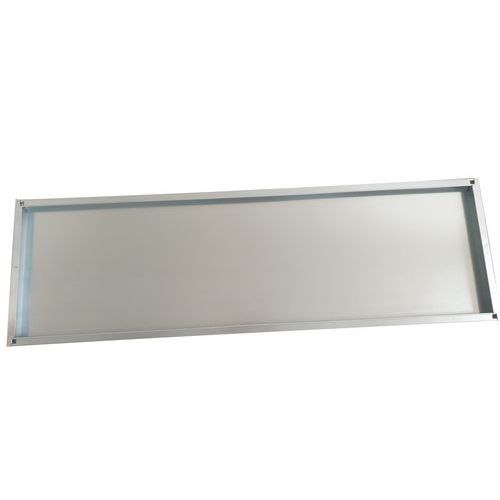 - Police o šířce 1 300 mm a hloubce od 300 do 600 mm jsou vyrobeny z pozinkovaného plechu.