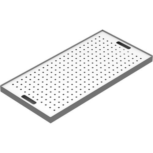 - Záchytné vany z pozinkovaného plechu s roštem slouží jako dodatečné police do skříně.