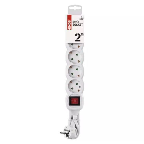 | Název produktu | Prodlužovací kabel Emos s vypínačem, SCHUKO, bílý, PVC, 5 zásuvek, 2 m |