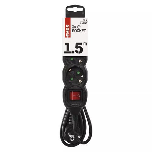 | Název produktu | Prodlužovací kabel Emos s vypínačem, SCHUKO, černý, PVC, 3 zásuvky, 1,5 m |