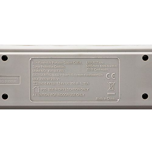 | Název produktu | Prodlužovací kabel s přepěťovou ochranou Powerton, 6 zásuvek, 3 m, bílá |