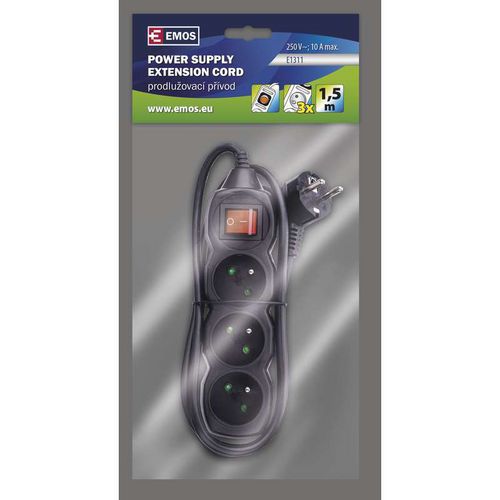 Prodlužovací kabel s vypínačem 3 zásuvky 1,5m, černý