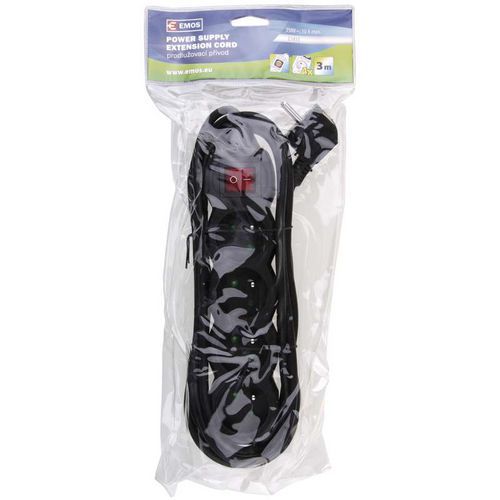 - Prodlužovací přívod, 4 zásuvka s vypínačem, délkou až 10m a průřezem vodiče 1 mm2. Vhodný pro maximální zátěž 10 A max.