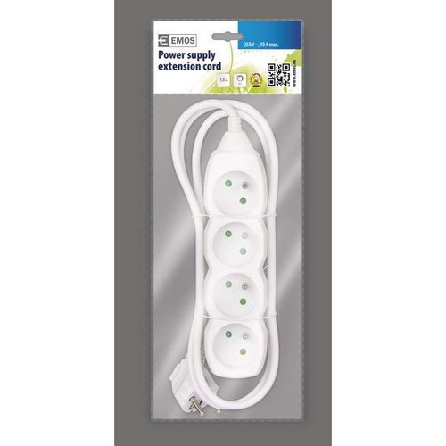 Prodlužovací kabely Emos, 4 zásuvky, bílé