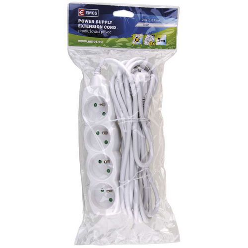 Prodlužovací kabel Emos, 4 zásuvky, bílý, 5 m