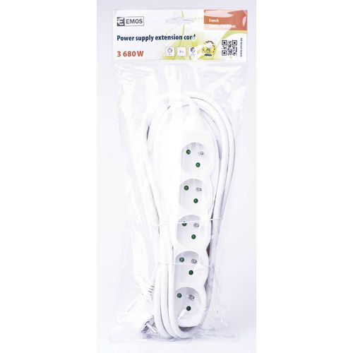 Prodlužovací kabel Emos, 5 zásuvek, bílý, 3 m