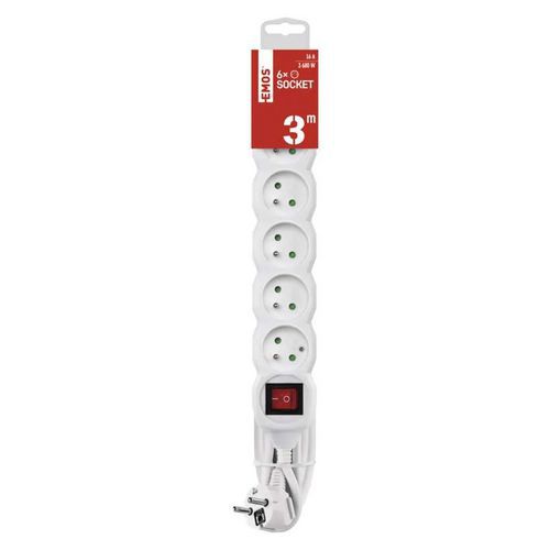 Prodlužovací kabel Emos s vypínačem, bílý, PVC, 6 zásuvek, 3 m