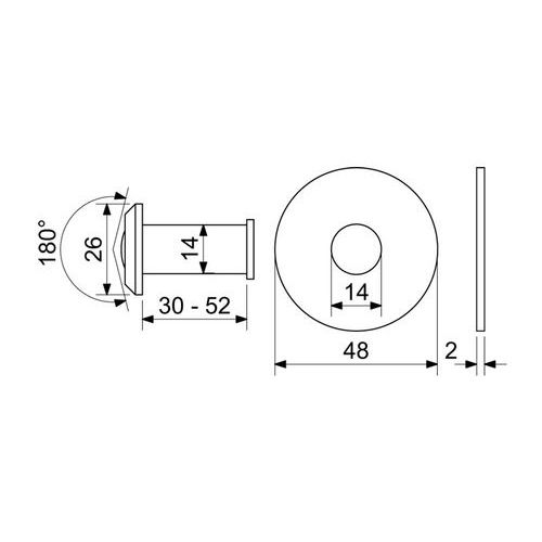 Název produktu Protipožární dveřní kukátko se skleněnou čočkou vč. 2 ks podložek