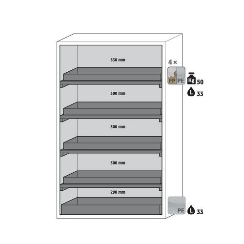 Protipožární skříň na hořlaviny Asecos, 1968 x 1196 x 616 mm, PP, 4 záchytné police, vana, 33 l, žlutá