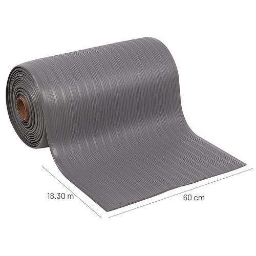 Protiúnavová průmyslová rohož Manutan Expert s rýhovaným povrchem, 1 830 x 60 cm, šedá