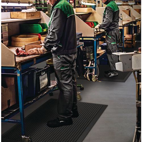 Individuální gumová rohož proti únavě pro všeobecné použití. Protiskluzové vlastnosti: navržena tak, aby přilnula k podlaze a zabránila uklouznutí. Velký komfort díky zrnitému povrchu s ergonomickými bublinami, které zmírňují únavu.