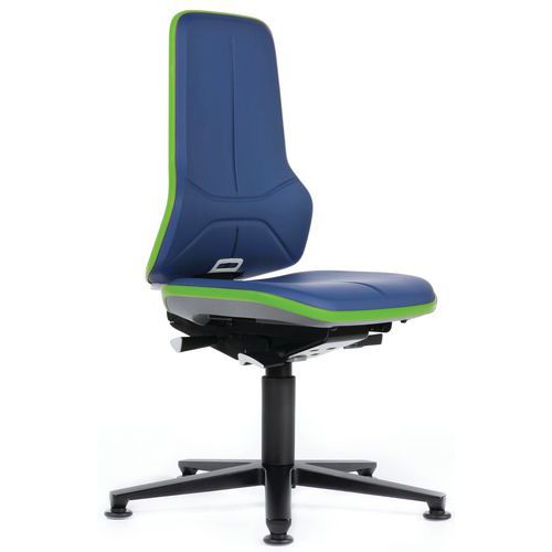 Rám dílenské židle Bimos Neon s kluzáky se skládá ze dvou prvků: konstrukce sedadla, včetně základny a mechanismu a odnímatelného čalounění.