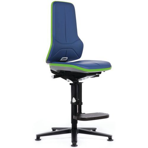 Rám dílenské židle Bimos Neon 3 s opěradlem a podnožkou, synchronní mechanismus, modrá/zelená