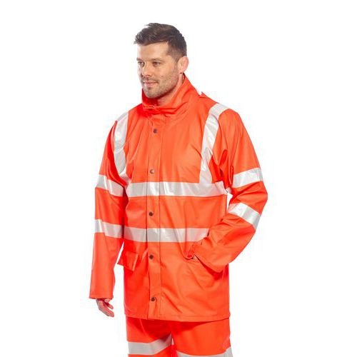 Nepromokavá bunda s reflexními prvky vhodná pro práci v nepříznivém počasí. Dvě velké kapsy pro ukládání věcí, lepené švy, kapuce v límci se šňůrkou na stažení. Dvoucestný zip s krytým zapínáním na druky, nastavitelné manžety na druky. Materiál 100% polyester, trikotový úplet, PU zátěr 185 g. Splňují normy EN 343 Třída 3:2 WP 5,000 mm, MVP 3,000 g/m²/24hrs, AS/NZS 4602.1:2011 Třída D/N, EN ISO 20471 Třída 3. Povrchová úprava TEXPEL™ SPLASH má extrémní odolnost vůči vodě, vysokou prodyšnost, pomáhá odpuzovat nečistoty a předcházet skvrnám. Sealtex™ Ultra je nepromokavý, větruvzdorný a prodyšný materiál.
