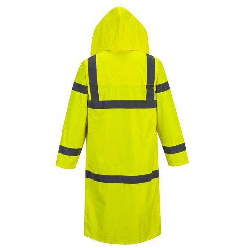 Splňuje normy ANSI/ISEA 107 TYPE R Třída 3 Fabric Performance (WP 5,000mm), EN ISO 20471 Třída 3, EN 343:2019 Třída 3:1 X (WP 5,000mm) a AS 4602.1 Třída D/N.