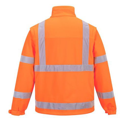 Multifunkční reflexní bunda ze softshellu. Díky odnímatelným rukávům lze vytvořit vestu. 4 kapsy pro ukládání věcí, z toho dvě boční a náprsní na uzavírání na zip, nastavitelné manžety na suchý zip. Vnější tkanina 94% polyester, 6% elastan 160 g laminátovaný ke 100% polyester Micro Polar Fleece 150 g. Bunda splňuje normy EN ISO 20471 Třída 3, ANSI/ISEA 107-2015 TYPE R Třída 3, RIS-3279-TOM ISSUE 1. Vesta splňuje normy EN ISO 20471 Třída 2, ANSI/ISEA 107-2015 TYPE R Třída 2, RIS-3279-TOM ISSUE 1. Povrchová úprava TEXPEL™ - SPLASH: Extrémní odolnost vůči vodě, vysoká prodyšnost, pomáhá odpuzovat nečistoty a předcházet skvrnám.