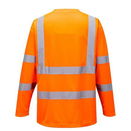 Tričko s reflexními pruhy a výraznou oranžovou barvou je vhodné do železničního průmyslu.