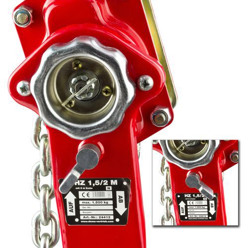 | Název produktu | Řehtačkový zvedák s článkovým řetězem, do 1 500 kg, 2 000 mm |