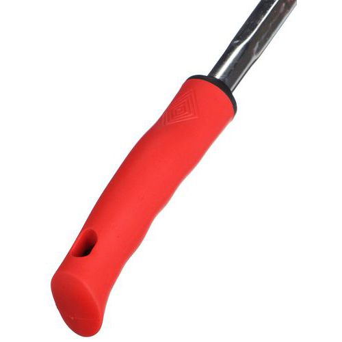 - Červená rukojeť pro dobrou viditelnost v zelené trávě