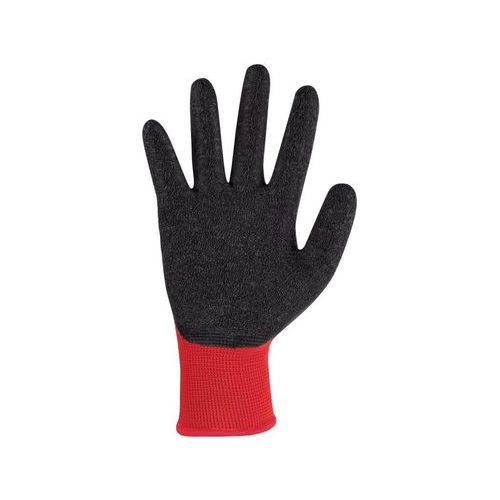 Pletené bezešvé rukavice, dlaň a prsty povrstveny latexem s protiskluzovou úpravou pro lepší úchop, ochrana proti kontaktnímu teplu do 100 °C, pružná manžeta. Doporučené použití: logistika, skladování, práce s horkými předměty do 100 °C, hobby, práce s kluzkými předměty, zahrada, stavebnictví, komunální služby, montáž a balení malých součástek. Velikost: 07-12 Svrchní materiál: 100 % polyester Prostředí: Vlhké Vlastnosti rukavic: Kontaktní teplo