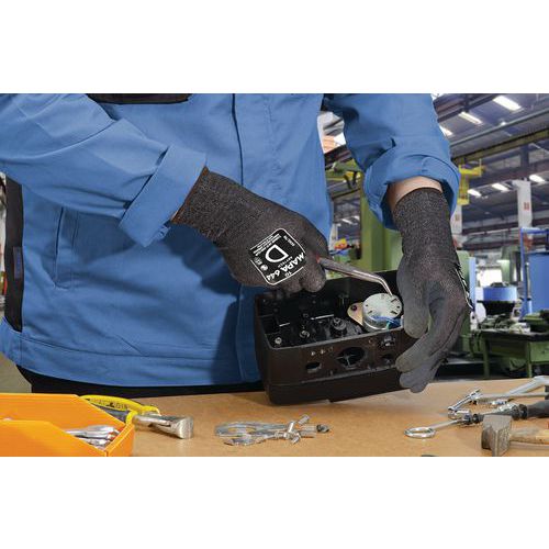 - Bezešvé pletené rukavice pro maximální pohodlí, dobrou obratnost a pružnost s vysokou ochranou proti proříznutí (úroveň D).