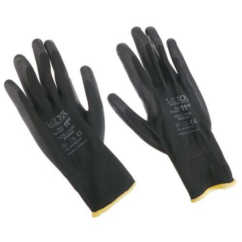 Rukavice pracovní z polyesteru polomáčené v polyuretanu GLOVE PE-PU 10, černé, SIXTOL