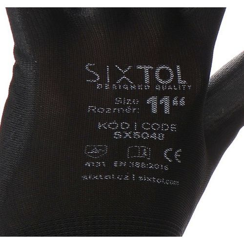 Rukavice pracovní z polyesteru polomáčené v polyuretanu GLOVE PE-PU 11, černé, velikost 11 SIXTOL