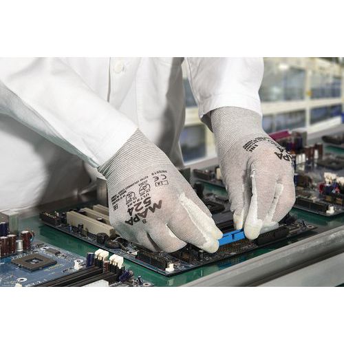 Rukavice speciálně vyvinuté k odvádění elektrostatického náboje, k ochraně elektronických zařízení před elektrostatickým výbojem (ESD) v souladu s normou EN 16350 (norma pro rukavice ATEX).