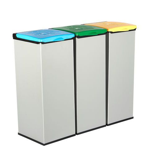 Sady odpadkových košů s víkem na tříděný odpad. Konstrukce neobsahuje dno, proto je nutné použít odpadkové pytle. Objem jednoho koše je 85 l a nosnost 3 kg. Vyrobeno v EU Max. zatížení (kg) : 3