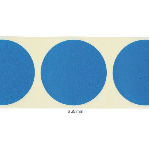 Samolepicí značkovací kolečka Manutan Expert, modrá, průměr 35 mm, 500 ks na roli