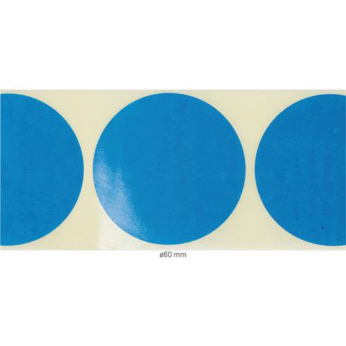 Samolepicí značkovací kolečka Manutan Expert, modrá, průměr 60 mm, 500 ks na roli