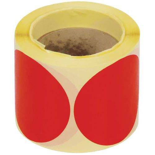 Samolepicí značkovací kolečka Manutan Expert, červená, průměr 90 mm, 500 ks na roli