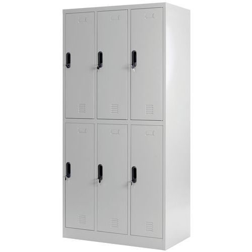 Šatní skříň Luna, 6 oddílů, cylindrický zámek, šedá/šedá - Manutan Expert